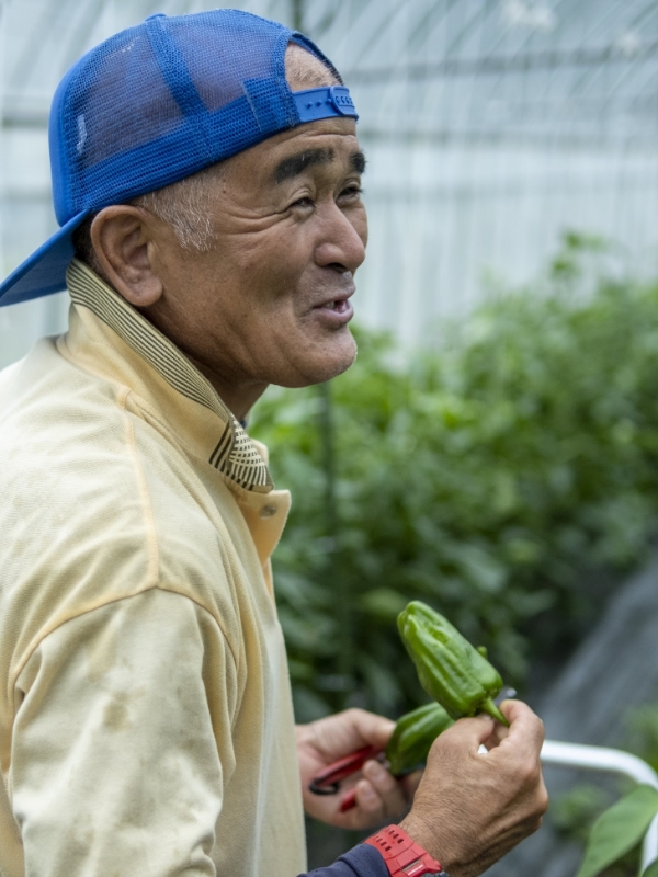 「1年間のトータルを計算すると、収量もだし、経費的にも変わらない。安価な肥料を使ったとしても、結局木が疲れてきたり、他の資材を入れていかないといけなくなるんです。有機肥料を使っていても疲れることはありますが、その疲れ方が全然違う。以前はピーマンは「肥料食い虫(肥料を吸収する力が強い)」って言われてたけど、実際はそんなに使わなくても出来ますよ。」